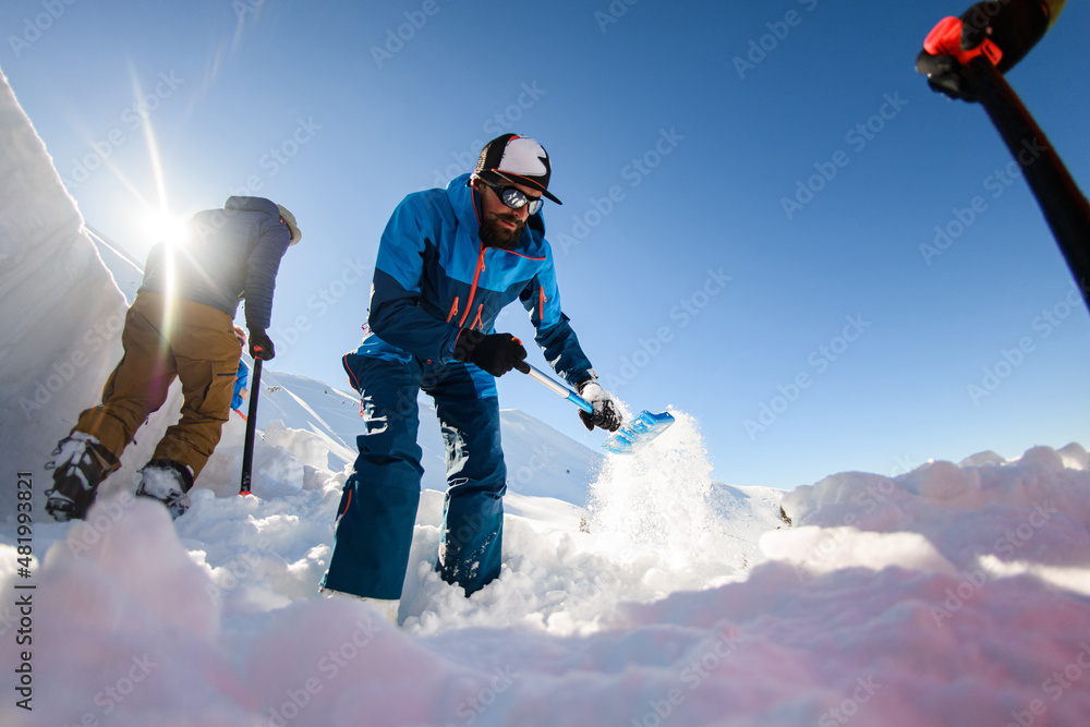 Fotografie men with shovels accurate digging the snow