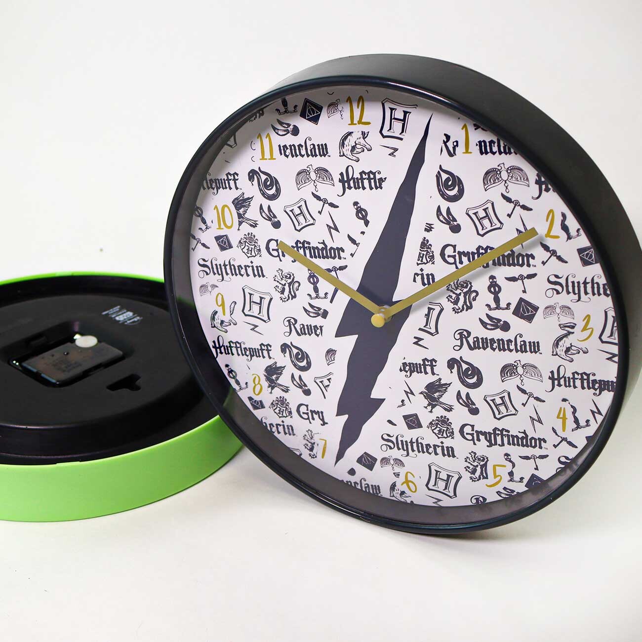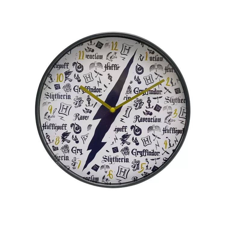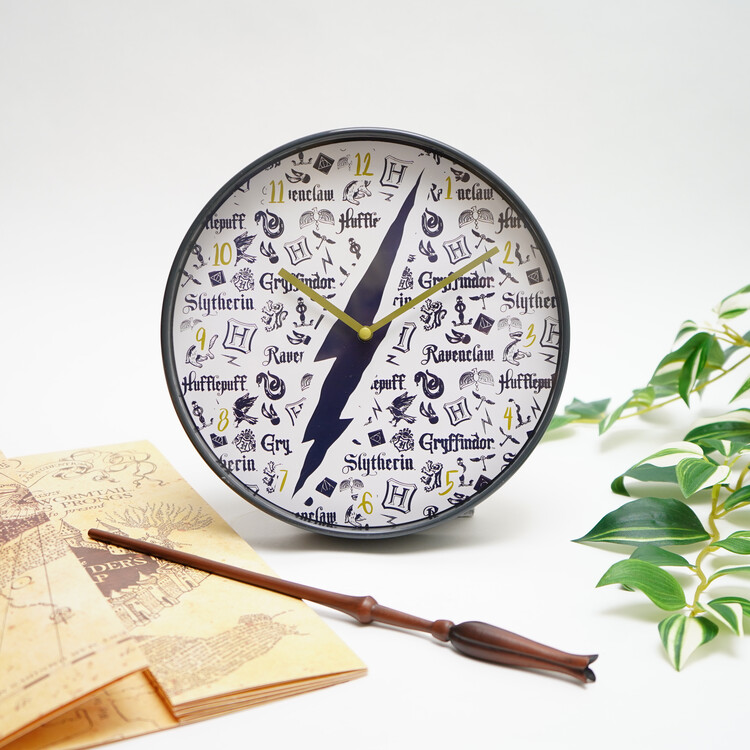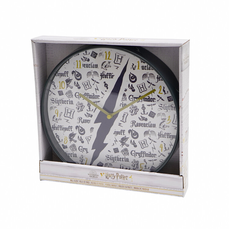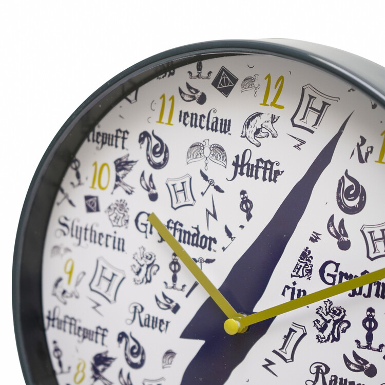 Tiché nástěnné hodiny s motivem čtyř bradavických kolejí musí mít každý fanoušek Harryho Pottera! Hodiny mají průměr 24,5 cm a k provozu stačí jedna AA baterie!