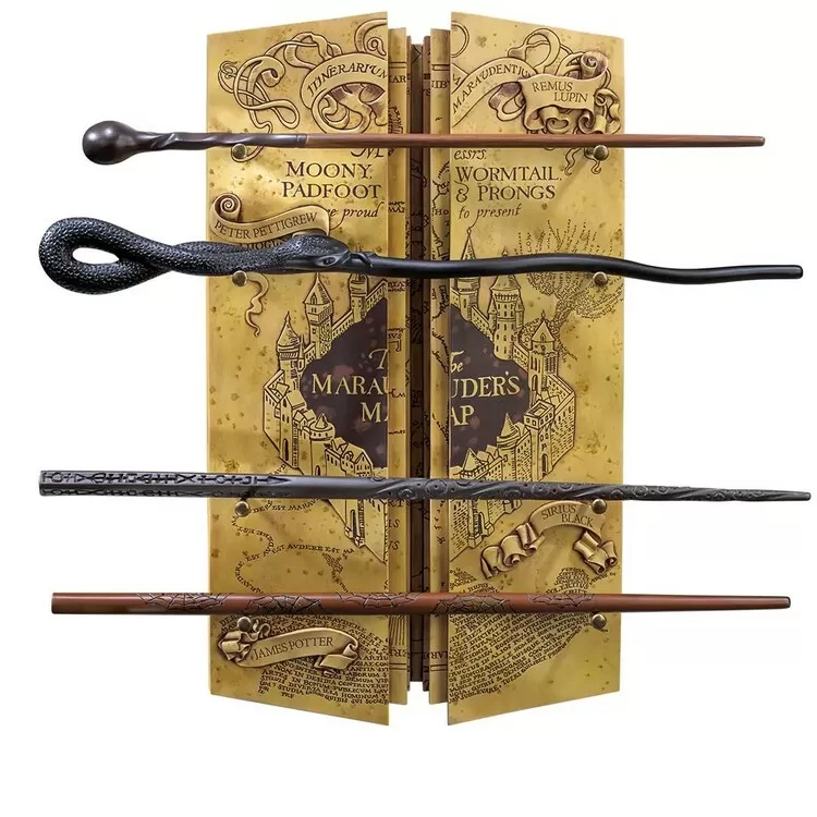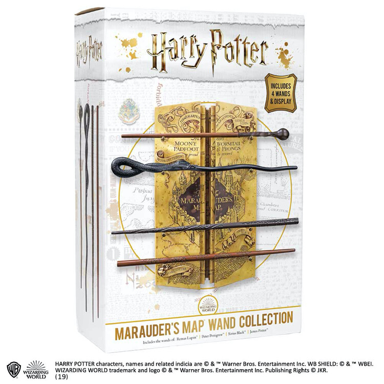 Exkluzivní sada hůlek čtyř Pobertů – Lupina, Pettigrewa, Siriuse a Jamese – na stylovém stojanu inspirovaném Pobertovým plánkem. Hůlka Petera Pettigrewa je dostupná pouze v této kolekci!