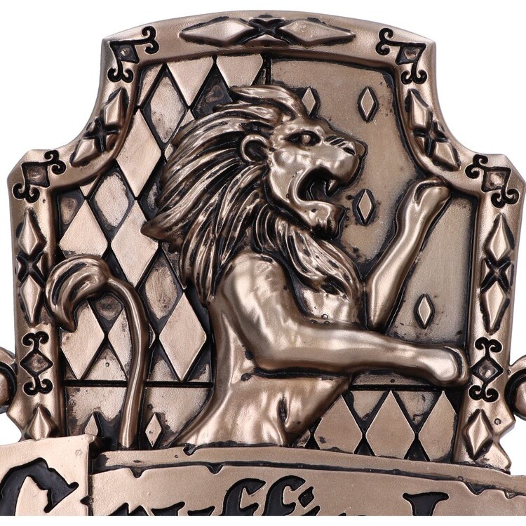 Objevte kouzelný svět s tímto oficiálně licencovaným bronzovým nástěnným plakátem Gryffindor z Harryho Pottera. Na tomto kusu je uprostřed lví symbol, který je emblémem domu Gryffindor, jehož členové jsou charakterizováni svou odvahou, statečností a odhodláním. Tento nástěnný plakát skutečně vynikne v jakékoliv výstavě. Odleto z vysoce kvalitní pryskyřice a následně pokryto bronzovým povrchem, tento kus je ideální pro všechny čaroděje, čarodějky a mudly!
