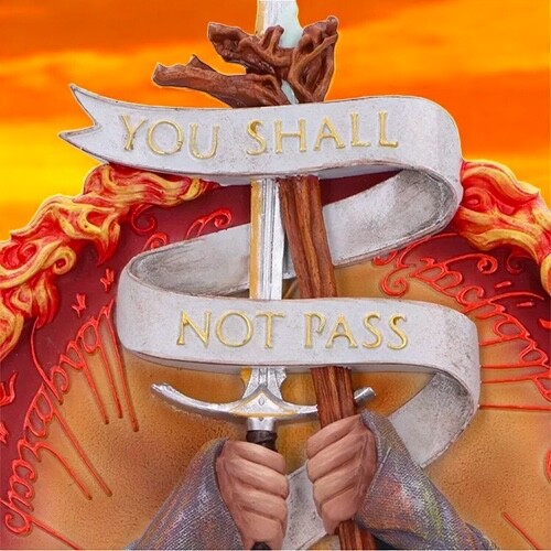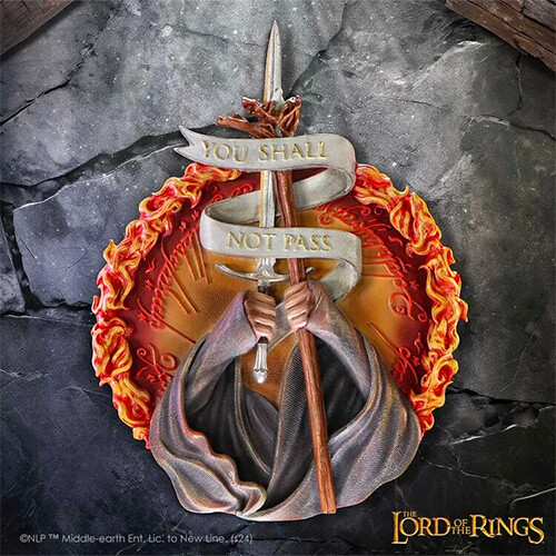 Luxusní nástěnná plaketa Pán prstenů s legendárním nápisem „You Shall Not Pass“ je připravena k připevnění na zeď a skvěle doplní jakýkoliv sběratelskýá koutek.