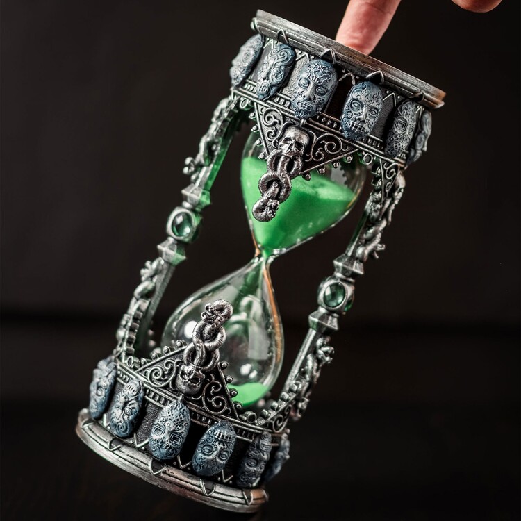 Funkční a estetický designTento pískový časovač skvěle kombinuje praktičnost s nádherným, avšak strašidelným designem, který okamžitě upoutá pozornost. Jeho temné motivy nejen zaujmou svým vzhledem, ale zároveň přinášejí funkčnost klasických přesýpacích hodin. Díky tomuto spojení se časovač stává nejen užitečným nástrojem pro měření času, ale také výrazným dekoračním prvkem, který obohatí jakýkoli interiér o tajemnou a kouzelnou atmosféru světa Harryho Pottera.