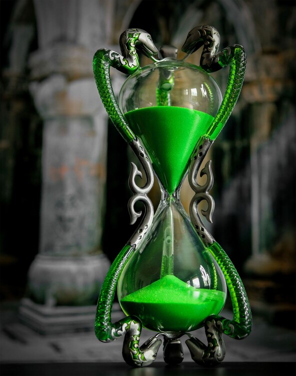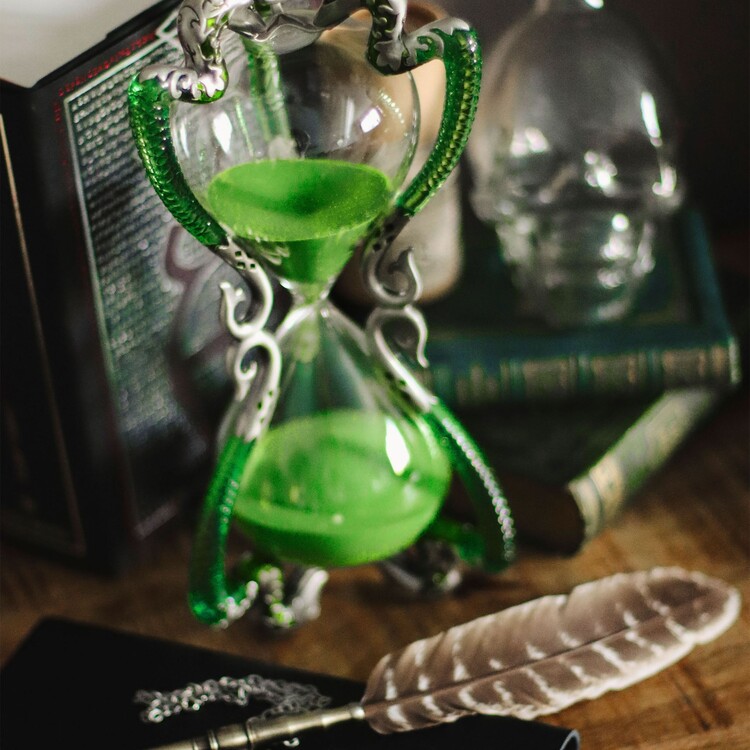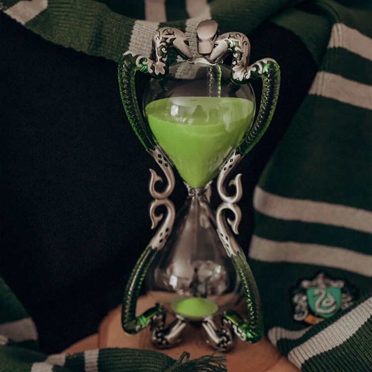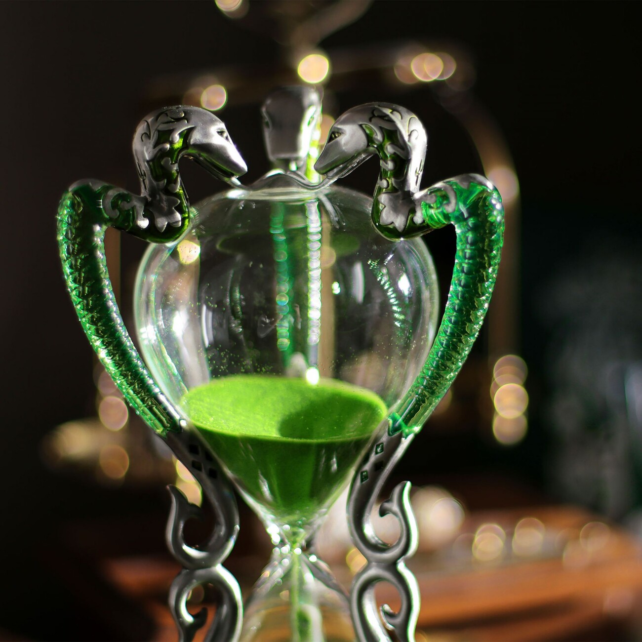 Pohádková replika ikonického přesýpacích hodin profesora Slughorna, nastavená na měření přibližně jedné hodiny. Jejich živý zelený design a precizní řemeslné zpracování je snem každého sběratele.