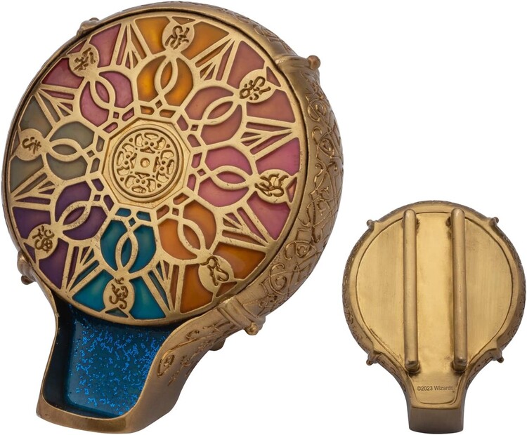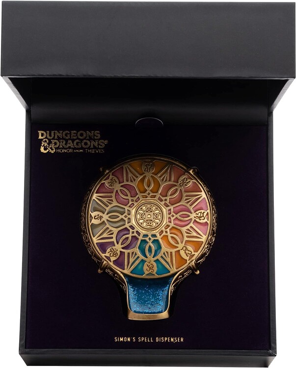Filmová replika Simonova dávkovače kouzel z filmu Dungeons & Dragons: Čest mezi zloději je majestátním doplňkem pro každého fanouška D&D. Dávkovač kouzel je vysoký 10,8 cm, takže se skvěle hodí k nošení na opasku jako součást cosplayového oblečení nebo k vystavení na desce stolu. Filmová replika je vyrobena z vysoce kvalitní zinkové slitiny s dlouhou životností, což zaručuje, že bude ceněným kouskem ve vaší sbírce po dlouhá léta. Vyvolejte sílu magie s touto nádhernou pestrobarevnou replikou ze svého oblíbeného příběhu. Díky svému praktickému designu můžete snadno sesílat kouzla doma i na cestách. Je to dokonalá rekvizita pro jakýkoli cosplayový outfit nebo stolní výstavku.