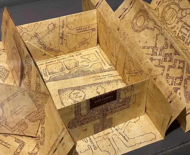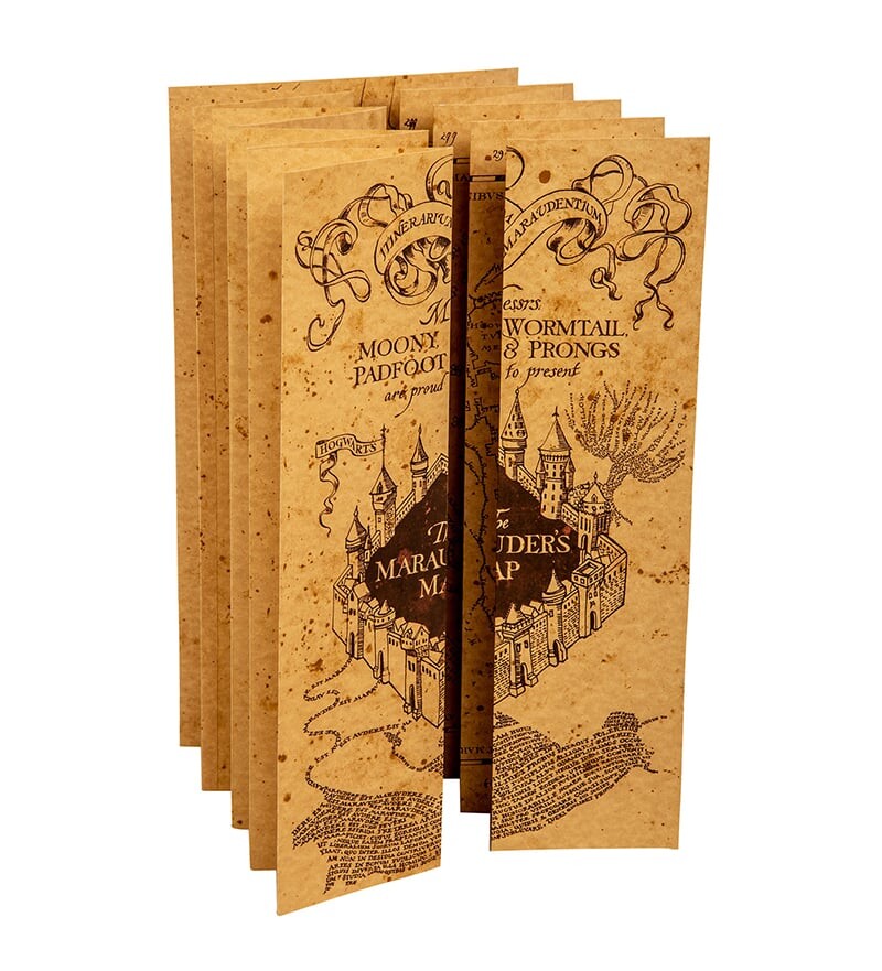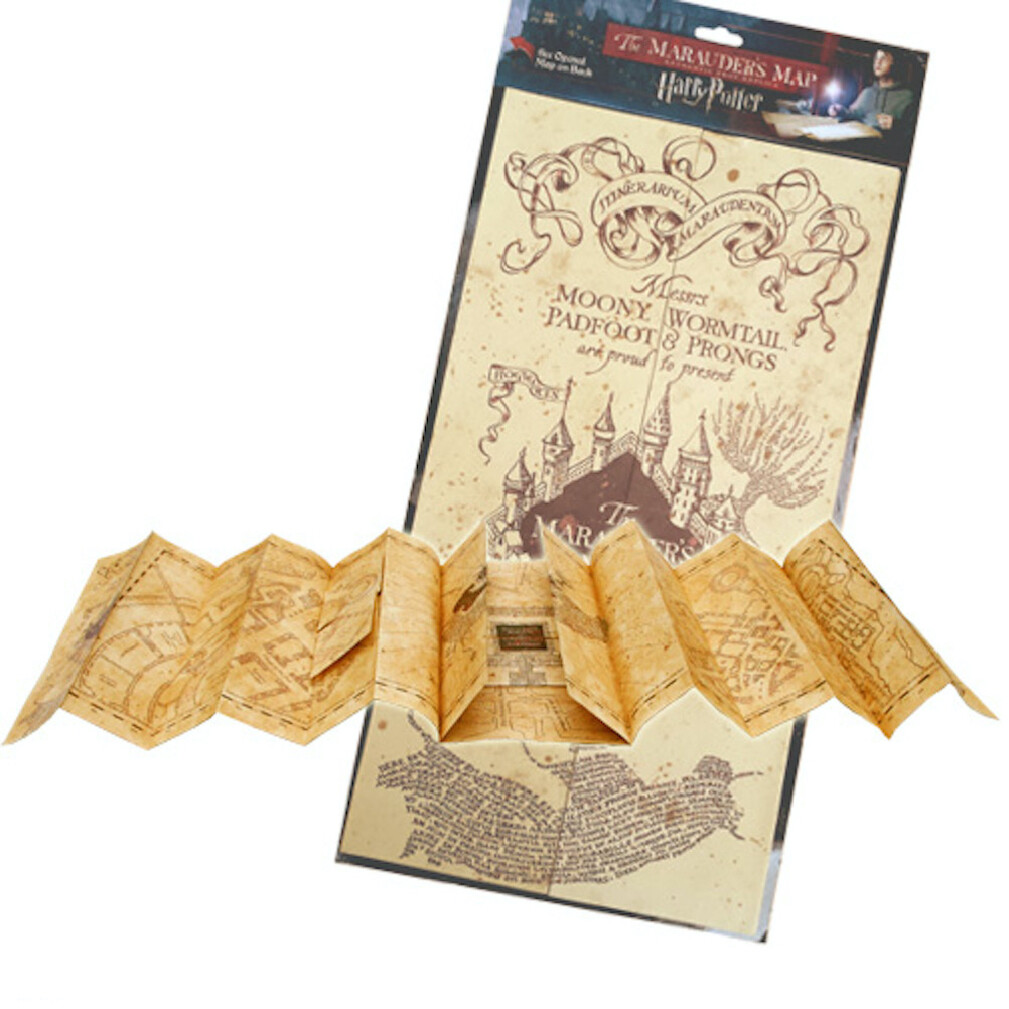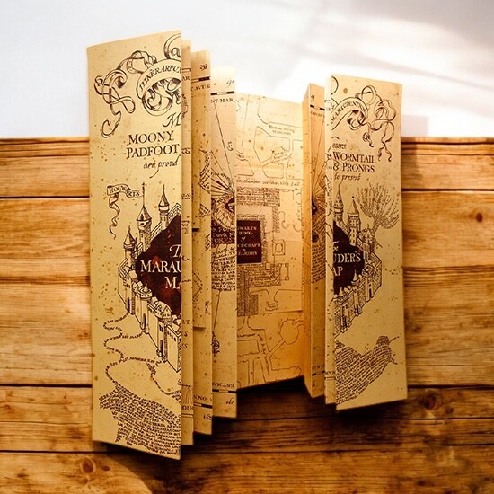 Magický Pobertův plánek z pergamenu má rozměry ve složeném stavu 25 x 39 cm a v rozloženém 174,5 x 39 cm. S takovým na párty zazáříte!
