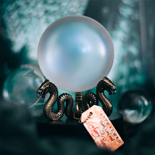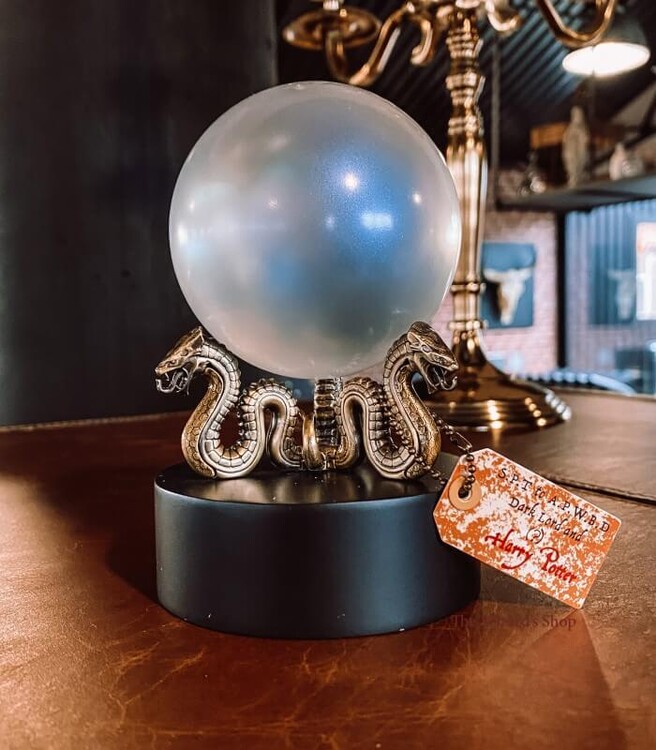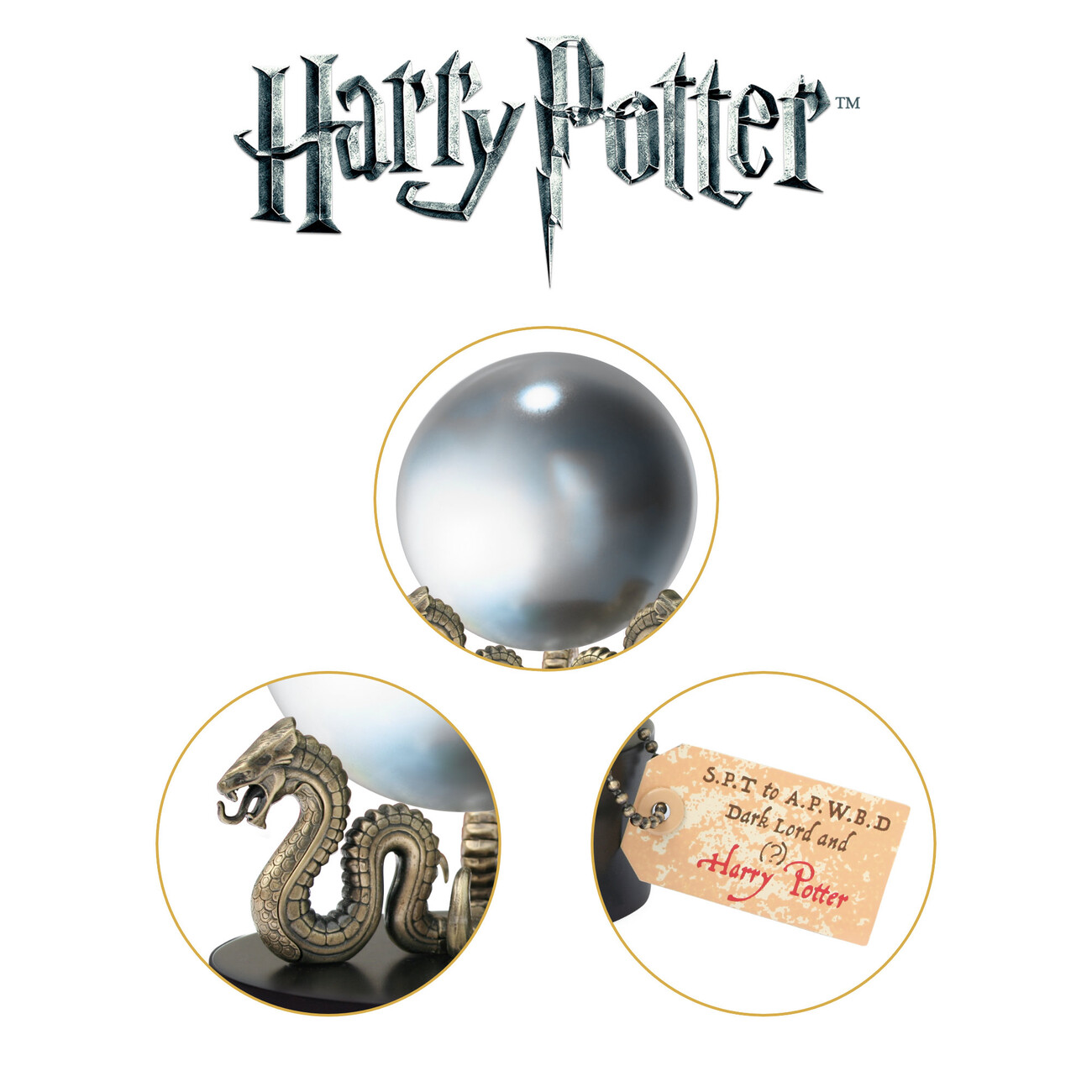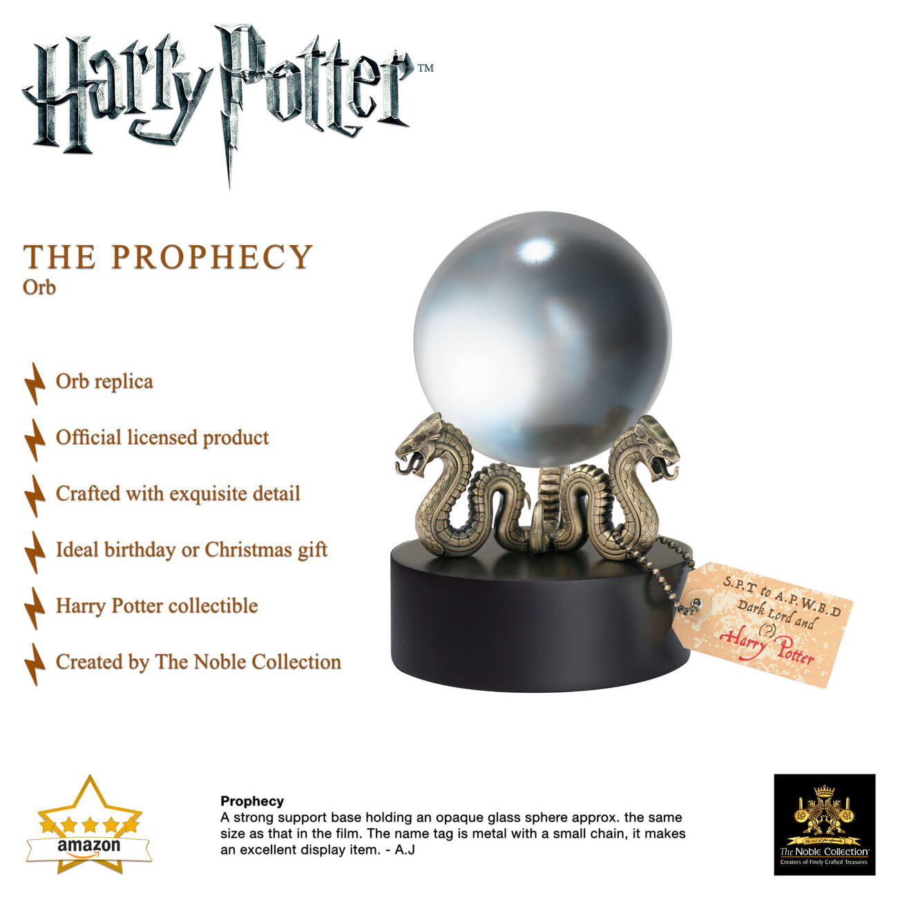 Luxusní replika Proroctví z filmu Harry Potter a Fénixův řád přináší věrný design s křišťálovou koulí vyrobenou ze skla, na kovovém bronzovém podstavci. Tento sběratelský kousek měří na výšku 13 cm.