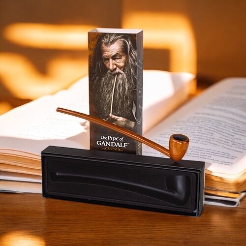 Luxusní plně funkční replika Gandalfovy dýmky z filmu Hobit: Neočekávaná cesta je vyrobena z jednoho kusu teakového dřeva a měří přibližně 23 cm. Je určena pro uživatele starší 18 let.