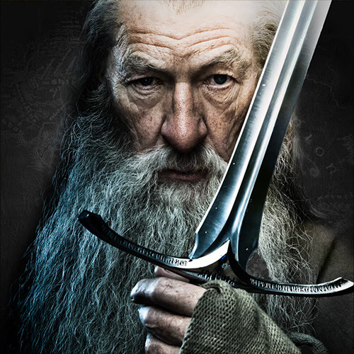 Ikonická zbraň Gandalfa Šedého a luxusní replika meče Glamdring z filmové trilogie Hobit vyrobena v měřítku 1:1 z nerezové oceli.