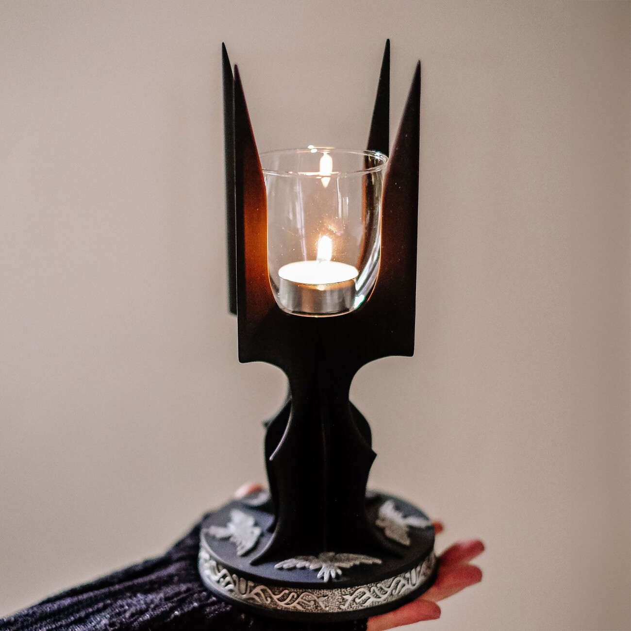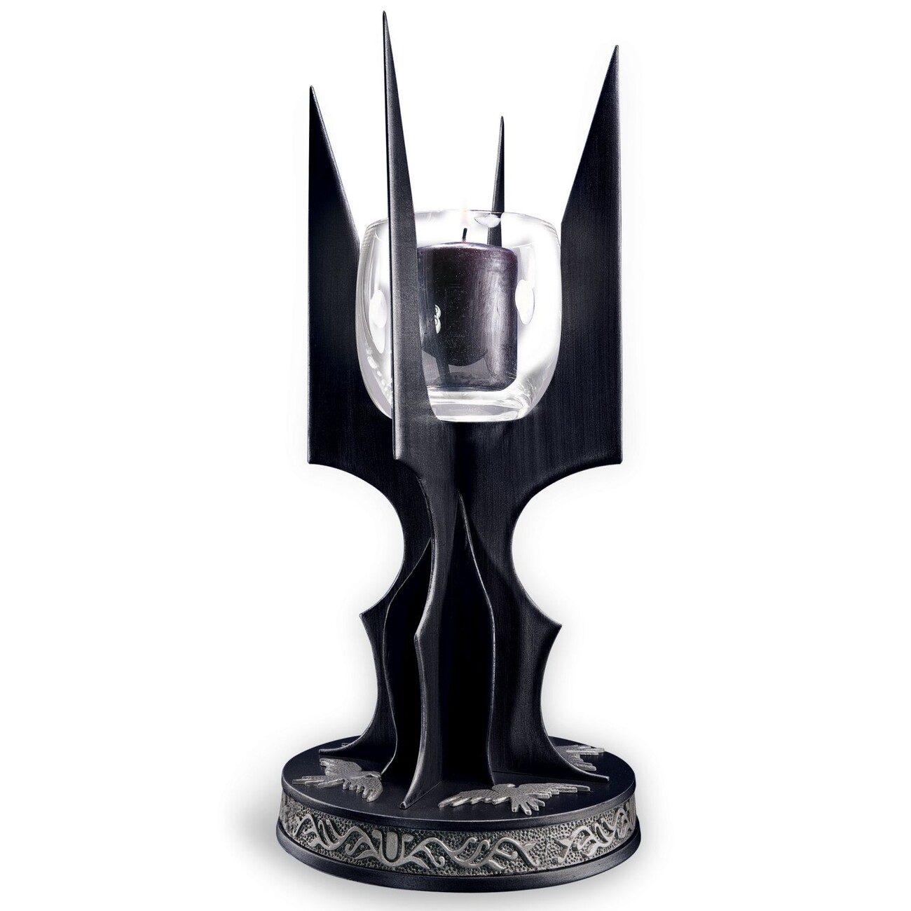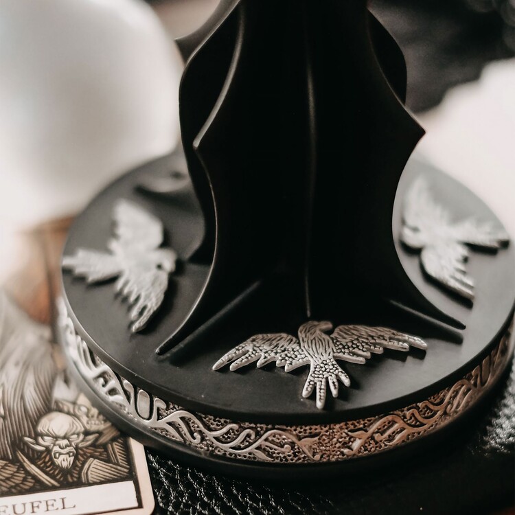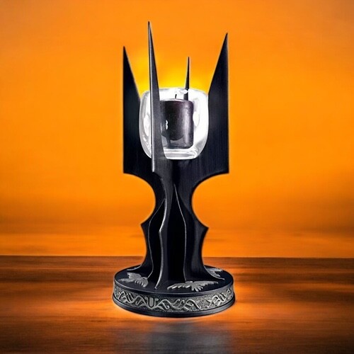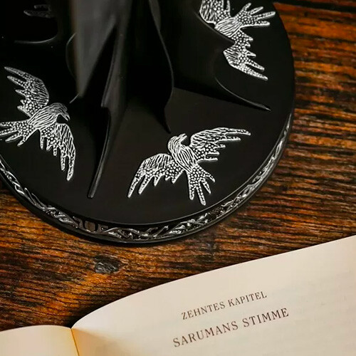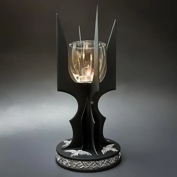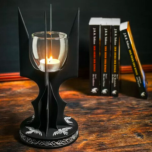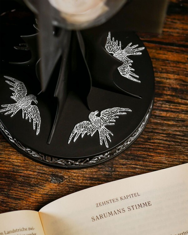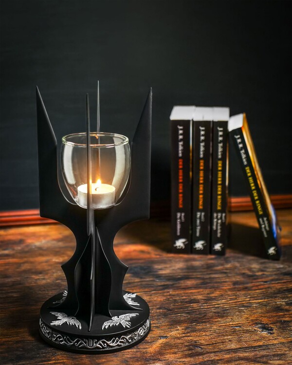 Luxusní svícen s certifikátem pravosti inspirovaný Pánem prstenů je precizně zpracovanou replikou hole Sarumana Bílého s detailním podstavcem připomínajícím Temnou věž. Svícen je vyroben z kovu, má výšku 26 cm a podstavec o průměru 12 cm.