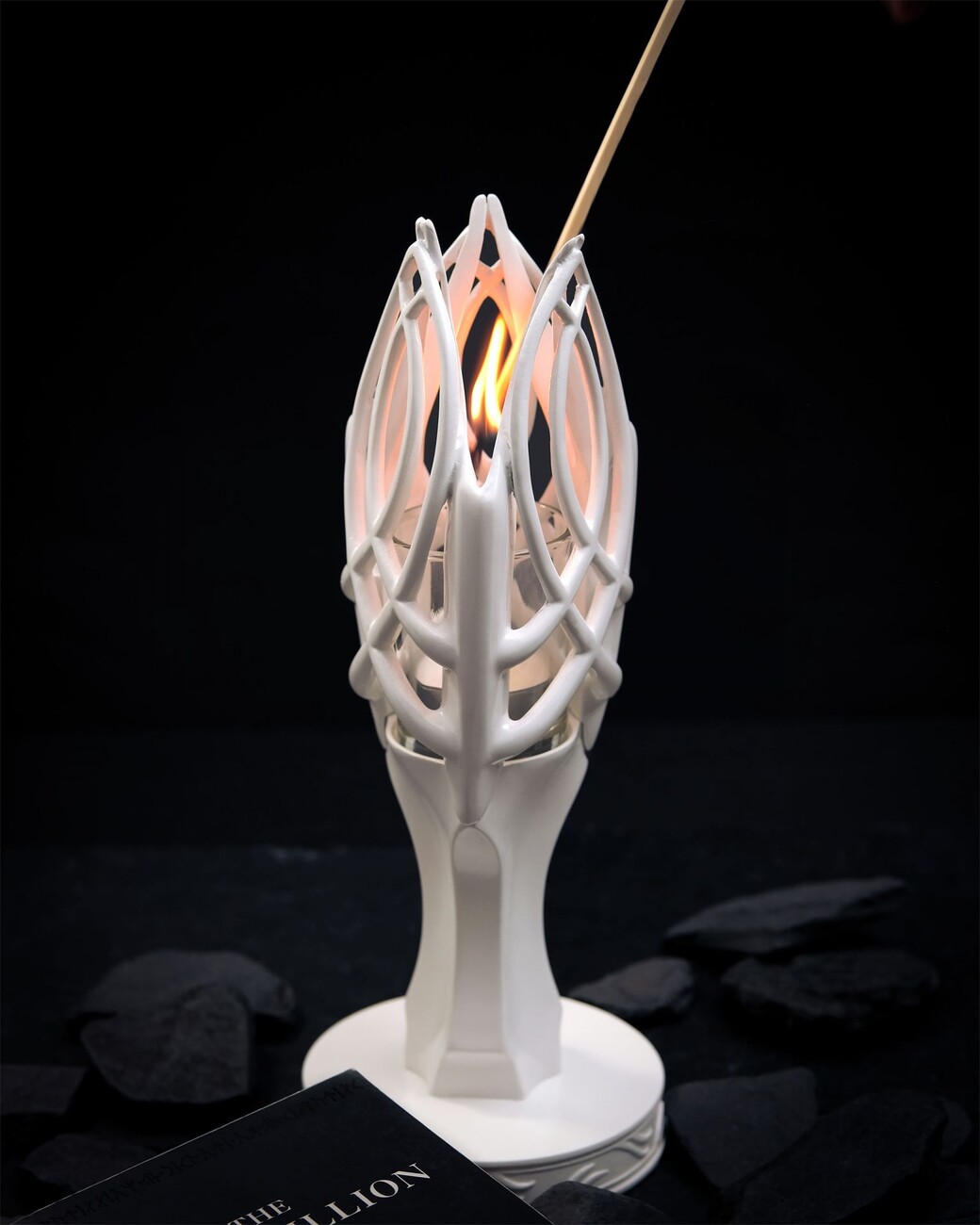 Přineste do svého domova kousek Středozemě s elegantní replikou Gandalfovy bílé hůlky, která byla mistrovsky přetvořena v okouzlující svícen. Tento unikátní sběratelský kousek přidá do vaší sbírky neuvěřitelný nádech magie a majestátu.