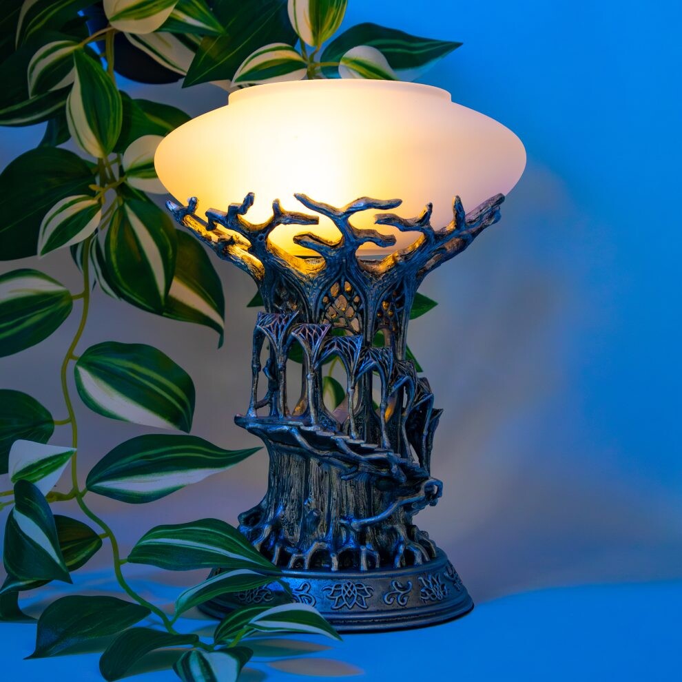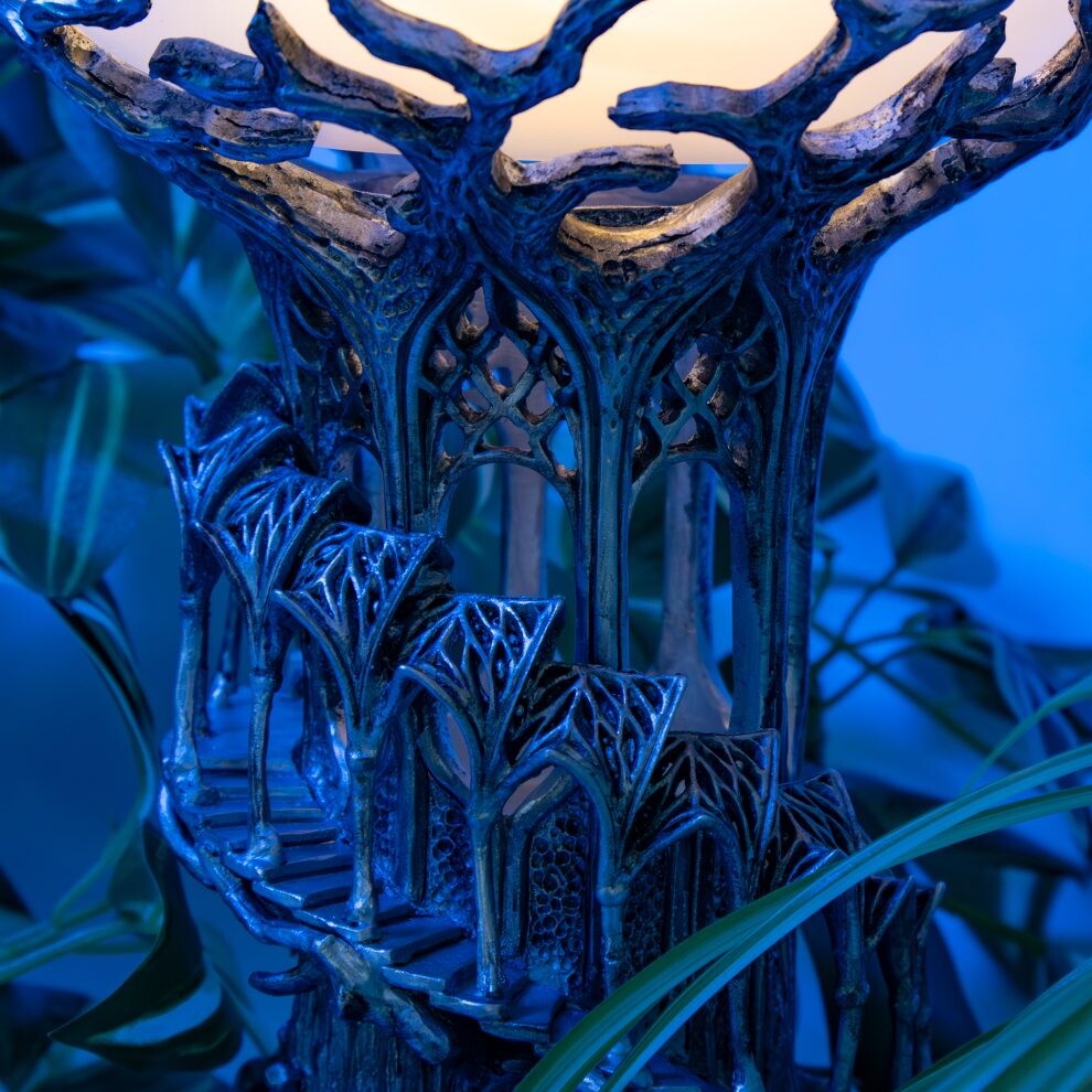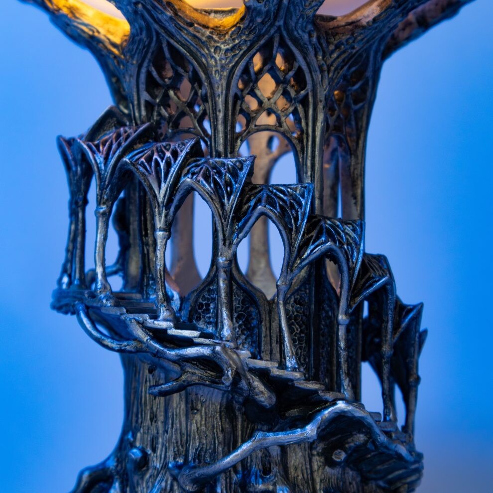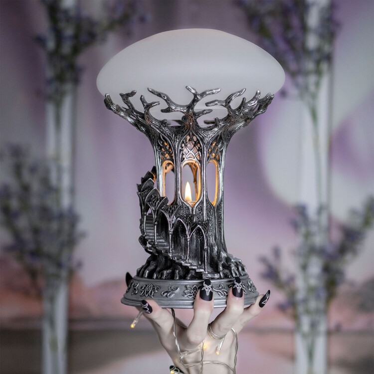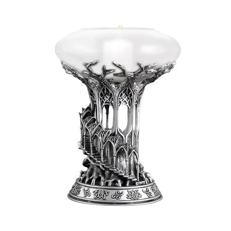 Mistrovské zpracování inspirované LothlórienemTento svícen s detailně zpracovanými spirálovými schody a oblouky věrně zobrazuje architekturu Lothlórienu, mystického a dechberoucího království elfů. Vysoce kvalitní pryskyřice byla použita k vytvoření elegantního základu, který připomíná kouzelný svět Tolkienovy Středozemě. Frosted skleněná nádoba na vrchu je perfektní pro různé velikosti svíček nebo pro vodu a plovoucí svíčky, což z něj činí univerzální a krásný doplněk každé místnosti.