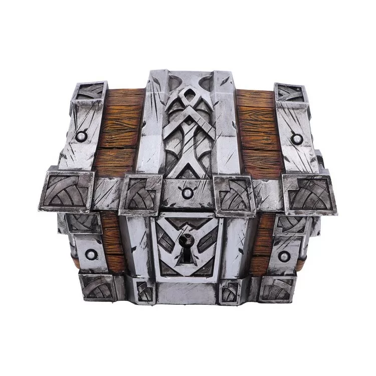 Tato pokladnice replikuje vzhled kovem obložené dřevěné truhly a zachycuje imerzivní estetiku světa World of Warcraft, což z ní činí ohromující vystavovací kousek.