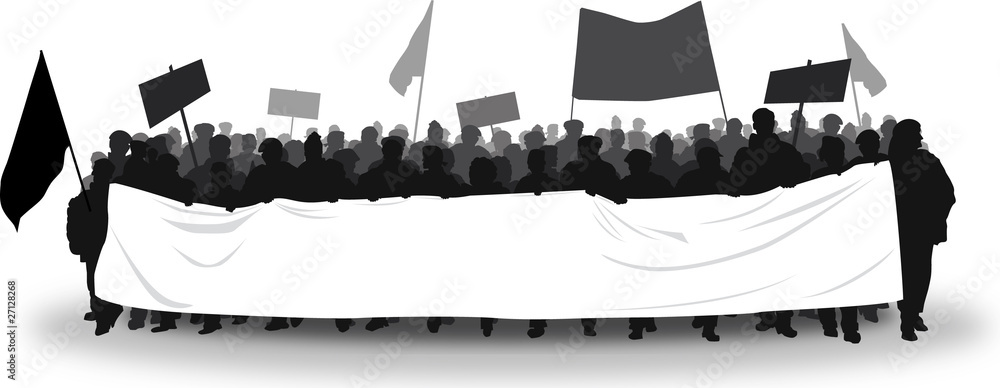 Fotografie Mietdemonstranten weißes Transparent