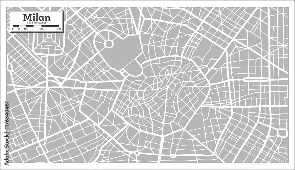 Obraz na plátně Milan Map in Retro Style. Hand Drawn.