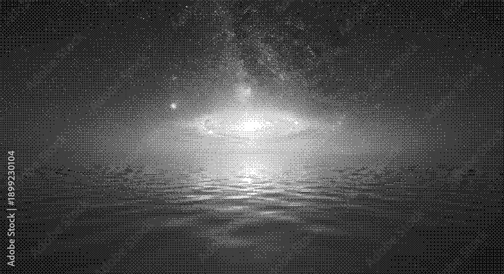 Fotografie Milky Way galaxy reflected in calm water under starry night sky with celestial b