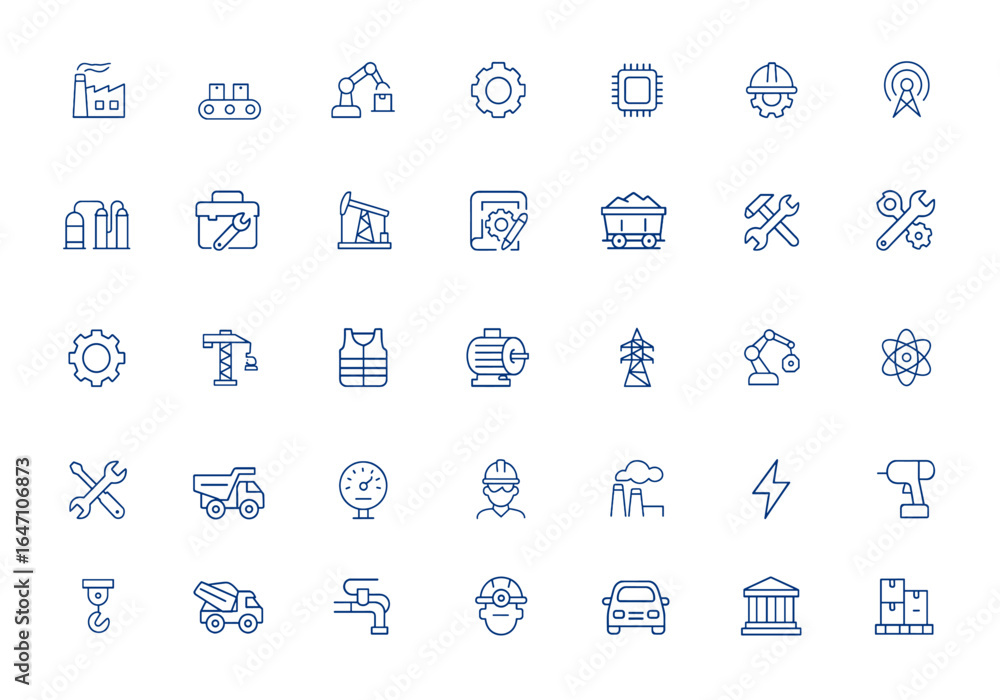 Fotografie Minimalist industrial line icons for manufacturing, production, engineering, construction, engine, and industry