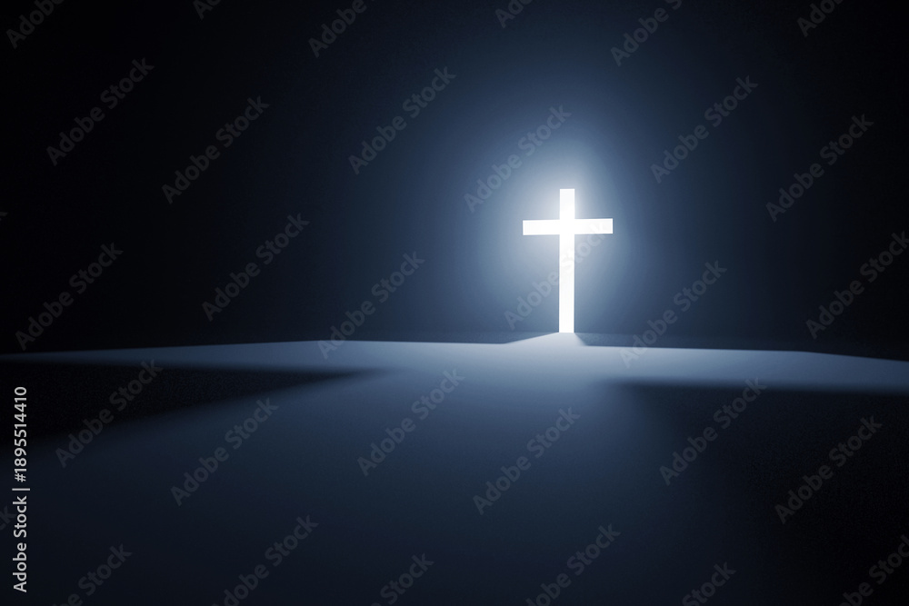 Obraz na plátně Minimalist religious background featuring a luminous white cross