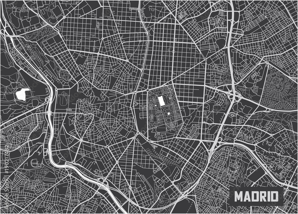 Obraz na plátně Minimalistic Madrid city map poster design.