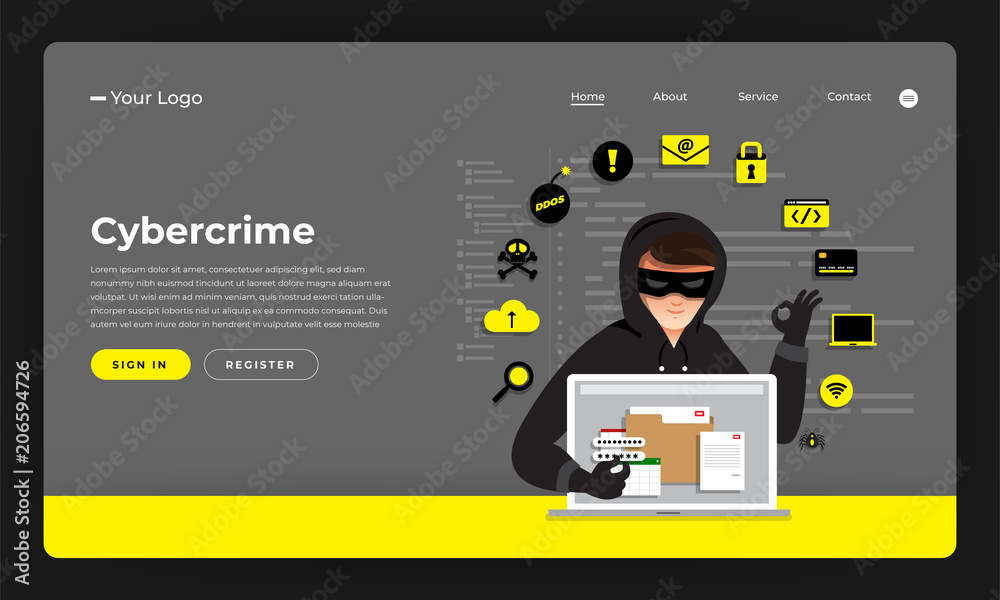 Fotografie Mock-up design website flat design concept hacker activity cybercrime and cyber thief