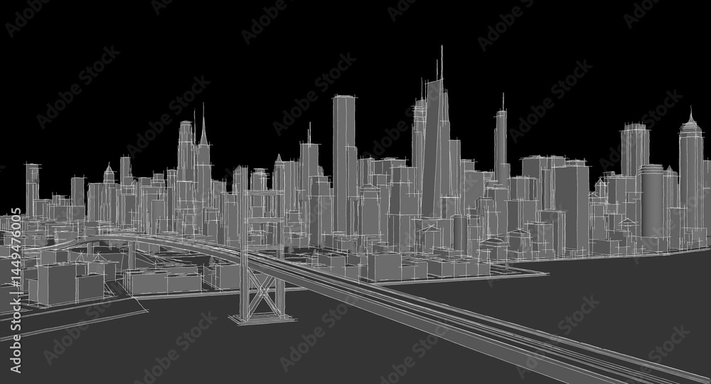 Fotografie modern city metropolis 3d illustration