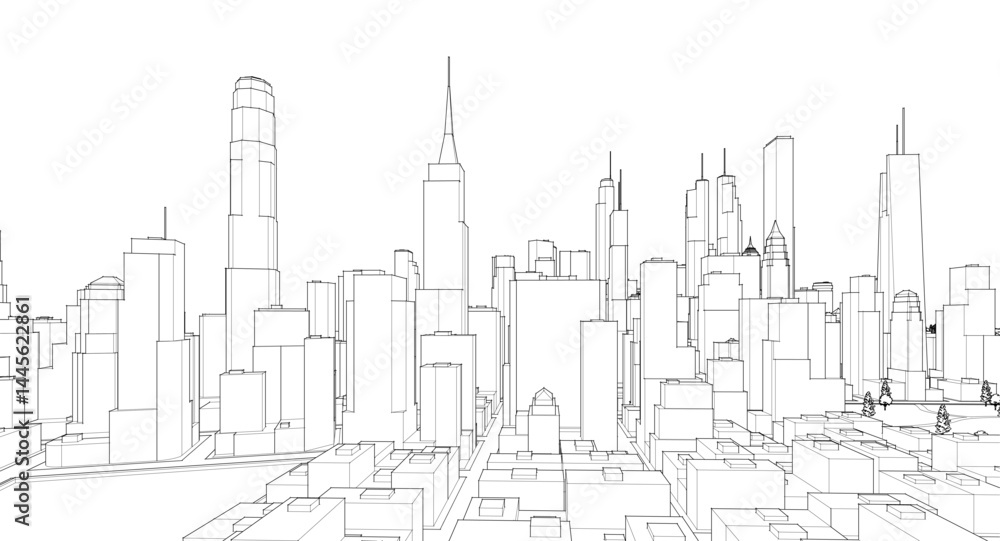 Fotografie modern city panorama 3d illustration