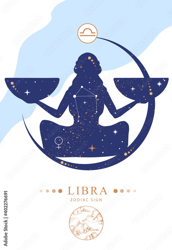 Fotografie Modern magic witchcraft card with astrology Libra zodiac sign