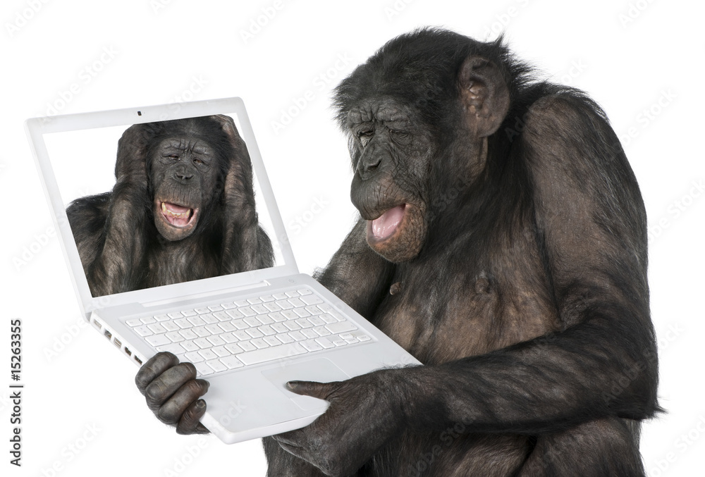 Fotografie monkey looking on a computer screen