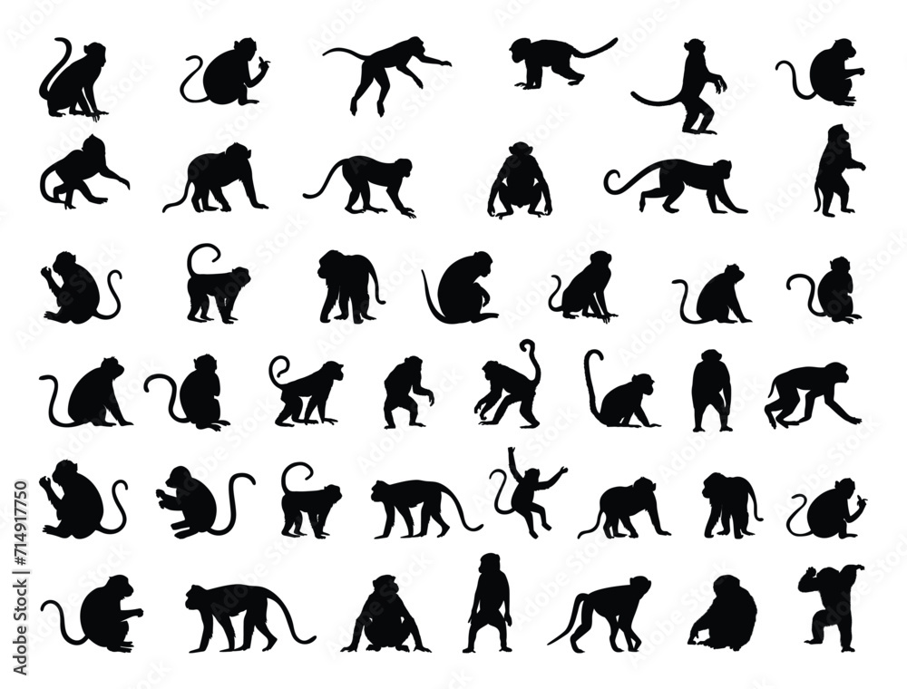 Fotografie Monkeys silhouette vector art white background