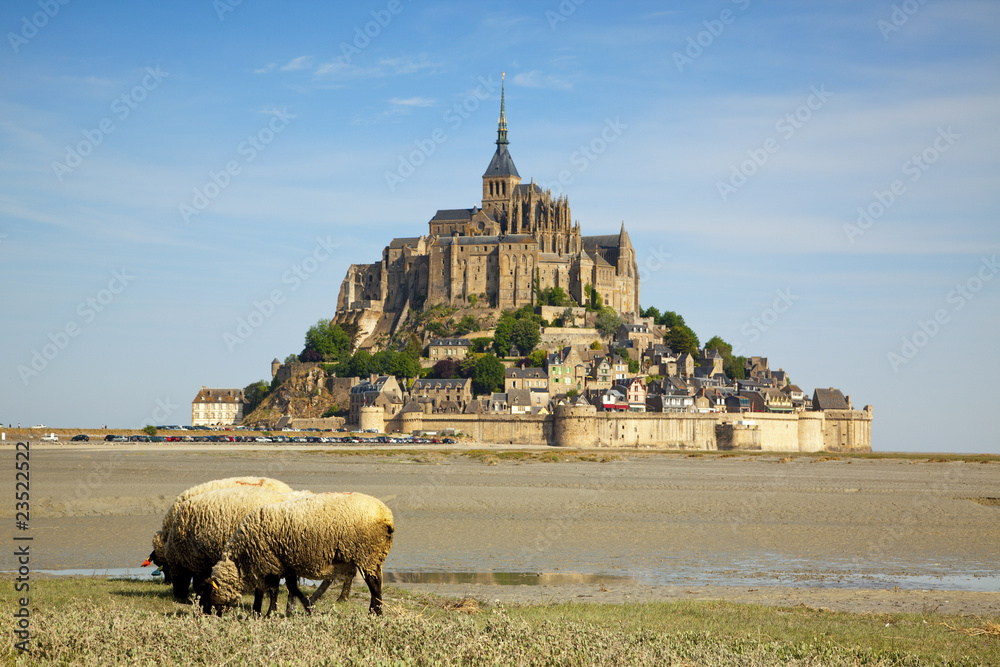 Fotografie Mont Saint Michel, Schafe im Vordergund
