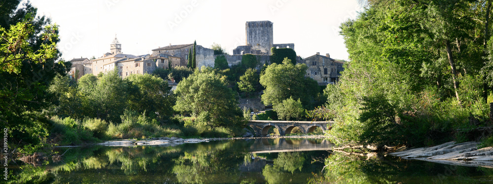 Fotografie Montclus, village du Gard en France au bord de la rivière Cèze