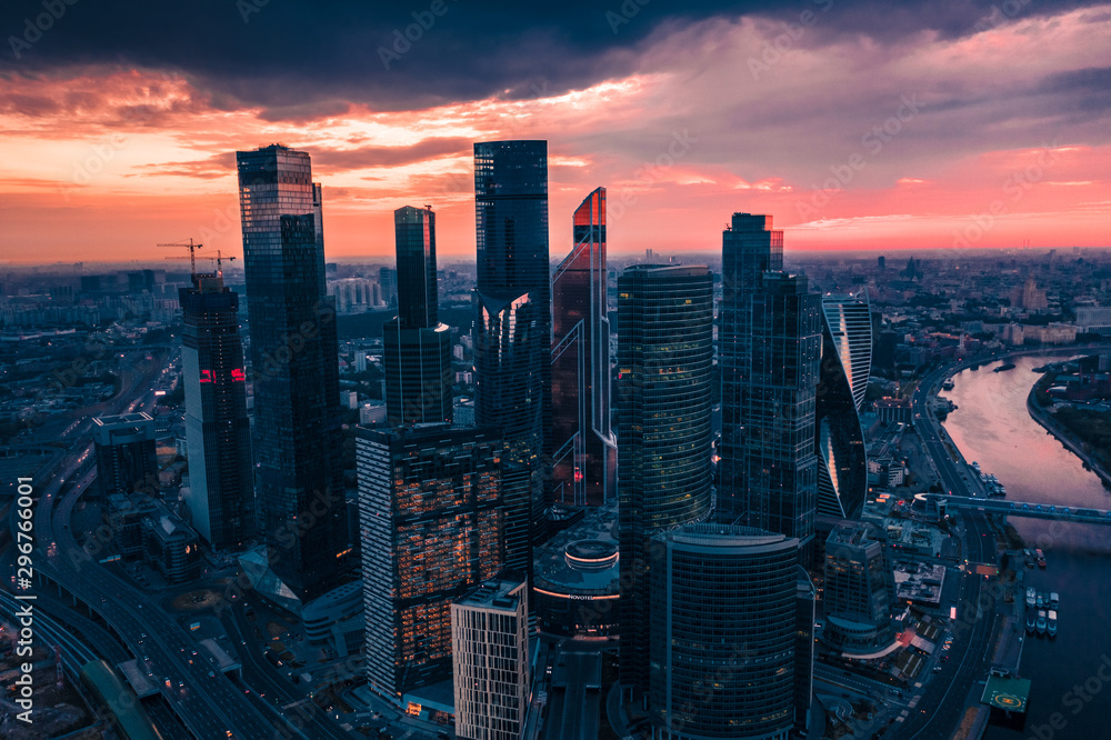 Fotografie Moscow City International Business Center at Twilight