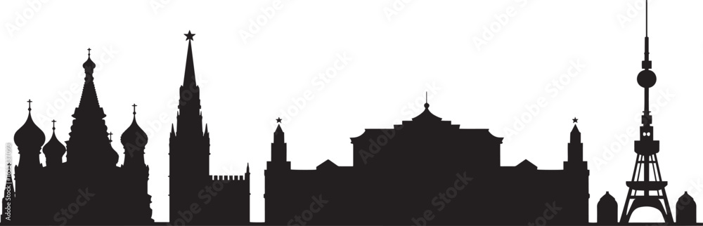 Fotografie Moscow Skyline Silhouette Vector Illustration with Famous Landmarks and Cityscap