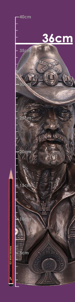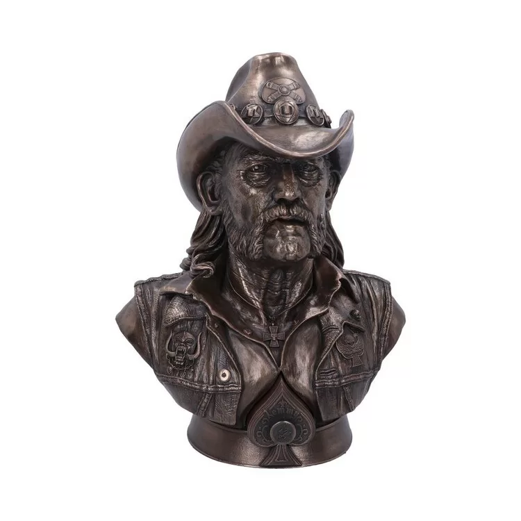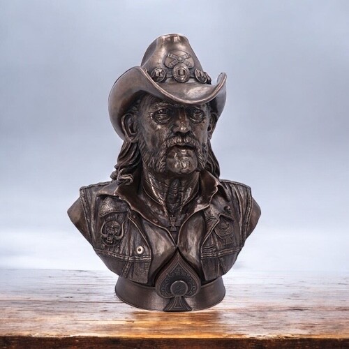 Luxusní busta Lemmyho z kapely Motörhead, vyrobená z kvalitní syntetické pryskyřice je ručně malovaná s bronzovým povrchem. Nenechte si ujít tento sběratelský kousek!