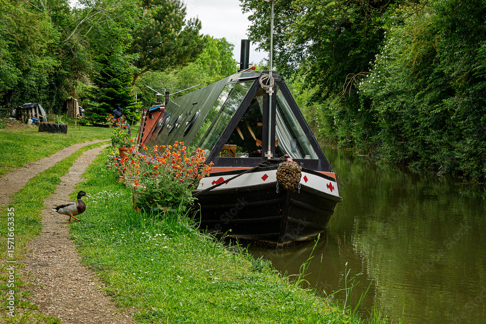 Obraz na plátně Narrow boat with a duck