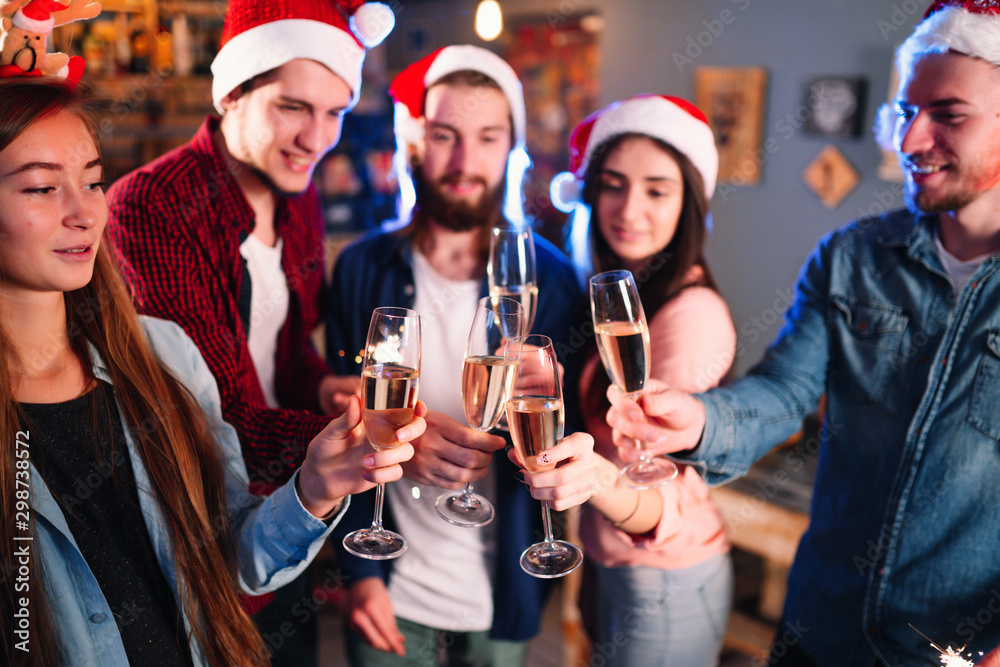 Obraz na plátně New year glasses for champagne in the hands of friends