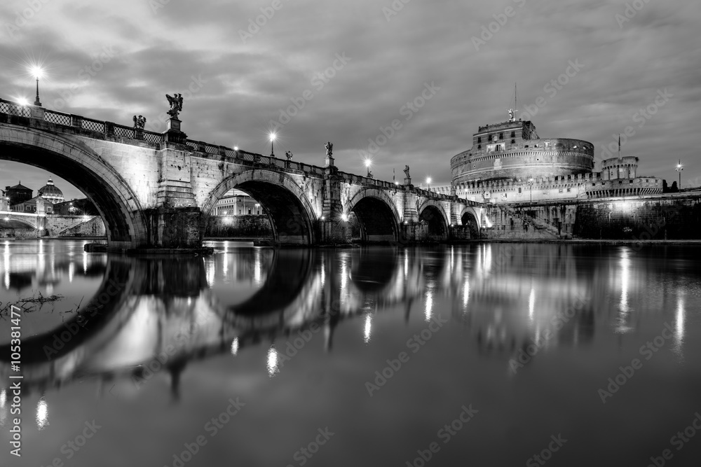 Fotografie Night view of S. Angelo Bridge, Rome