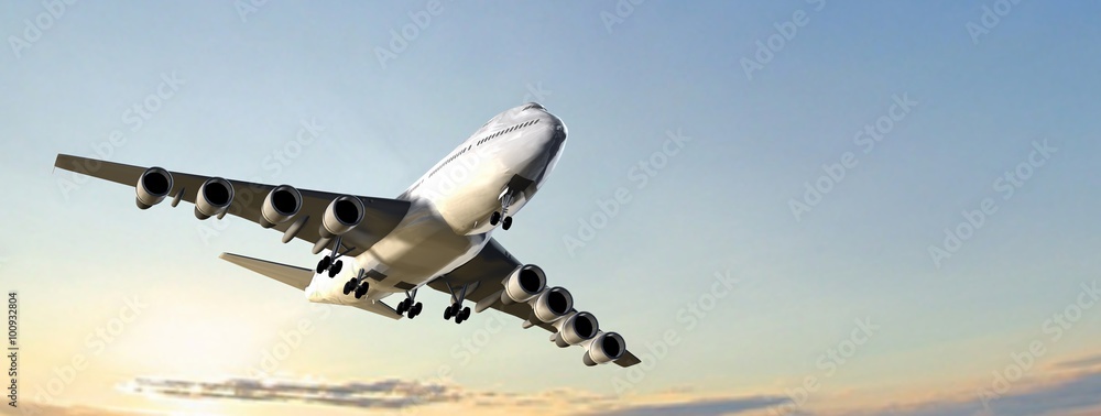 Obraz na plátně Modern Passenger airplane flight in sunset