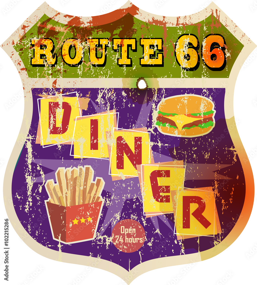 Obraz na plátně vintage route 66 diner sign, retro style, vector illustration