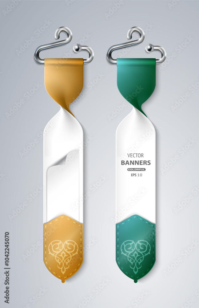 Obraz na plátně Set of 3d colorful twisted hang tags on steel hooks, decorative tags