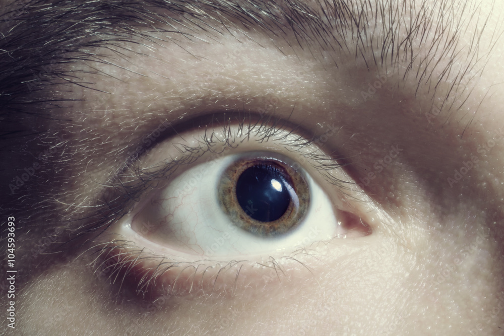 Obraz na plátně Male eye with dilated pupil