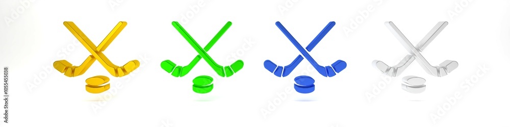 Obraz na plátně Colorful Ice hockey sticks and puck icon isolated on white background