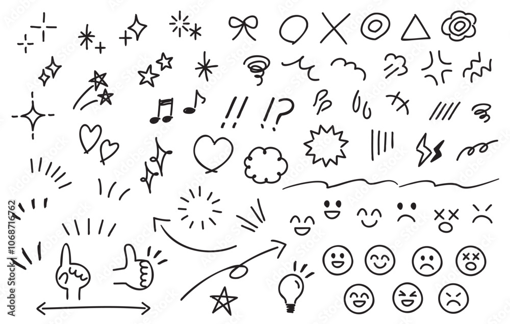 Obraz na plátně Cute handwritten black icons of emotions and emoticons