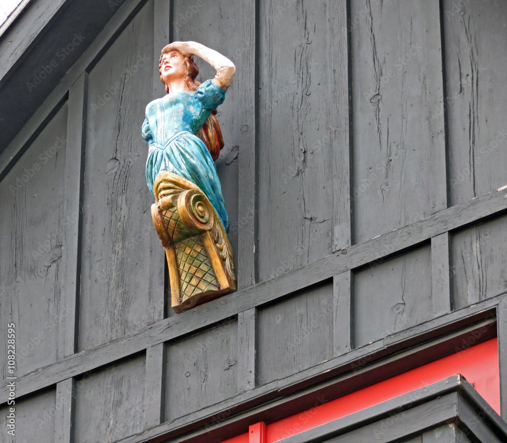 Obraz na plátně Ship's figurehead of a woman looking out to sea.