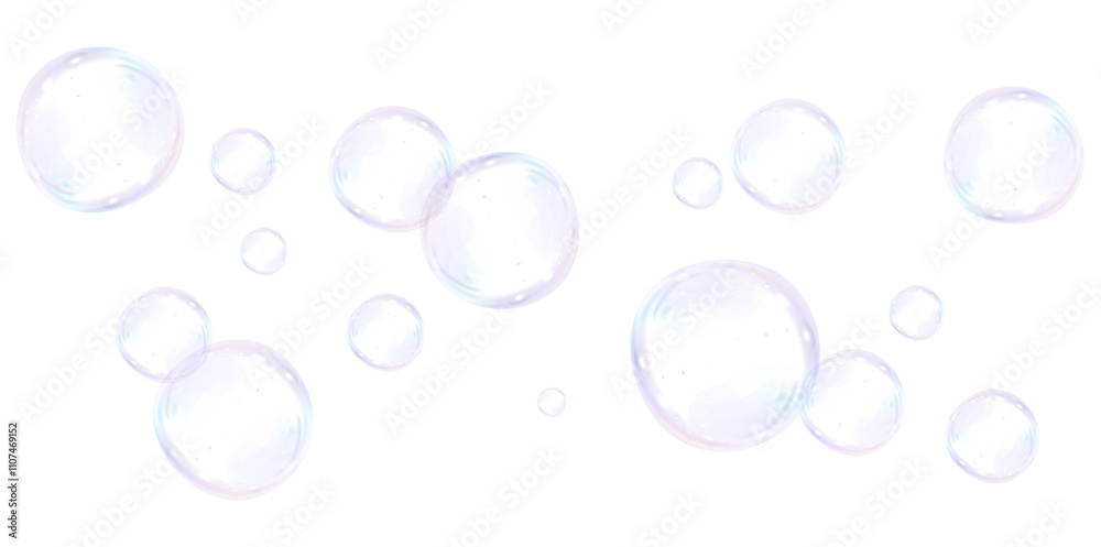 Obraz na plátně Soap bubbles on a white background, painted in watercolor. PNG