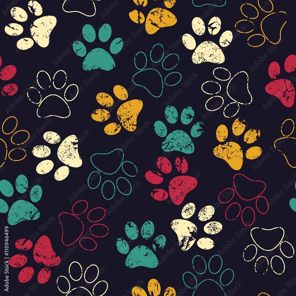 Obraz na plátně Vector seamless pattern with cat or dog footprints. Cute colorfu