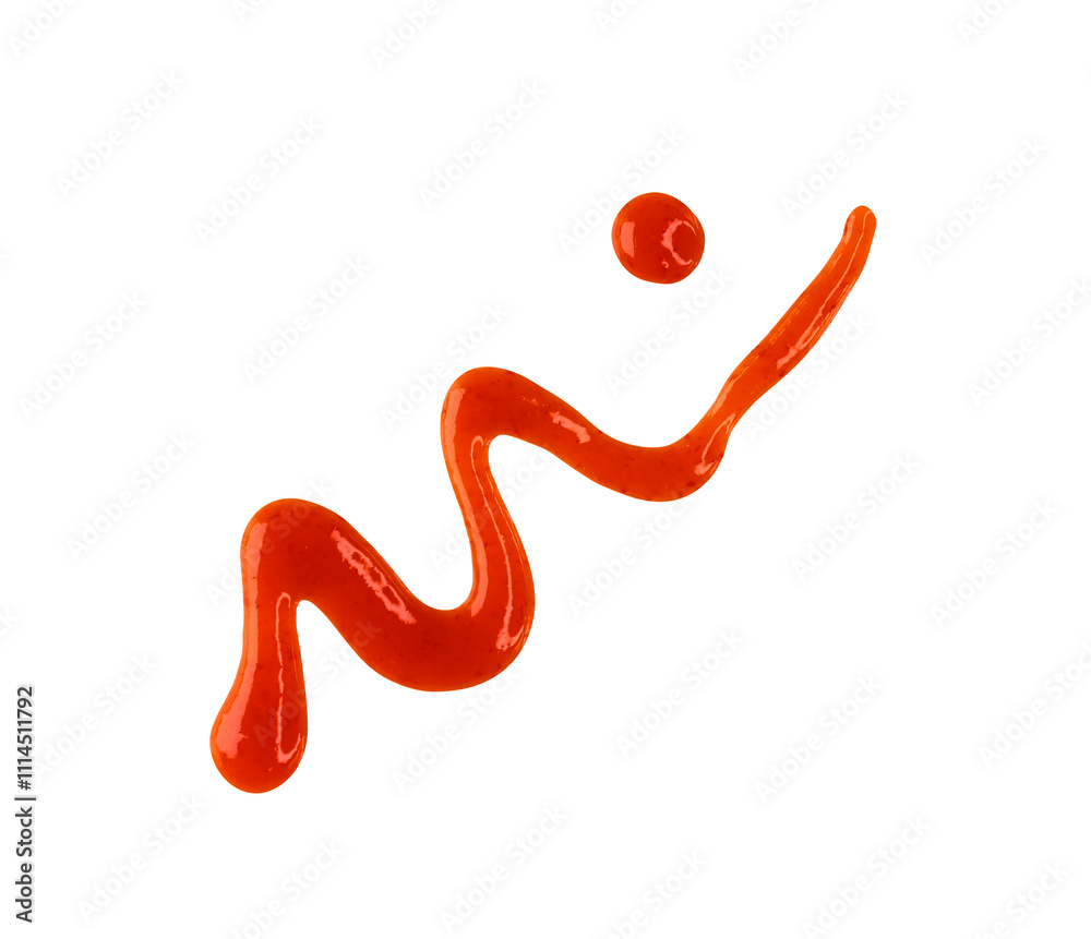 Obraz na plátně Line and drops of red hot chilli sauce isolated on white, top view, clipping path, PNG