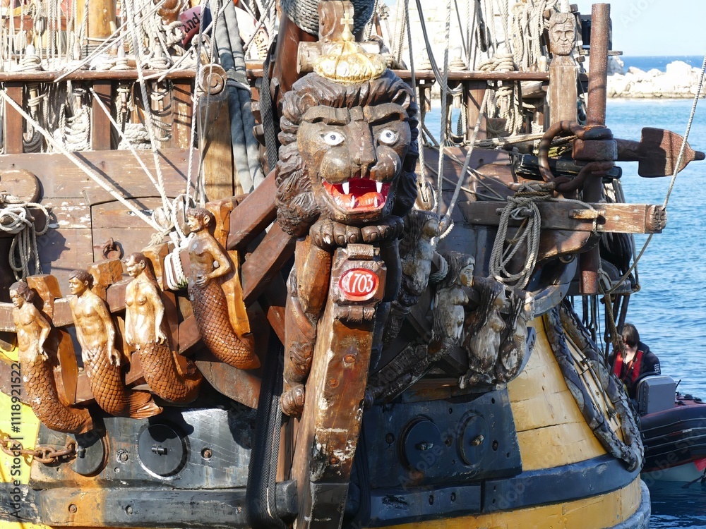 Obraz na plátně Wooden figurehead of tall ship frigate
