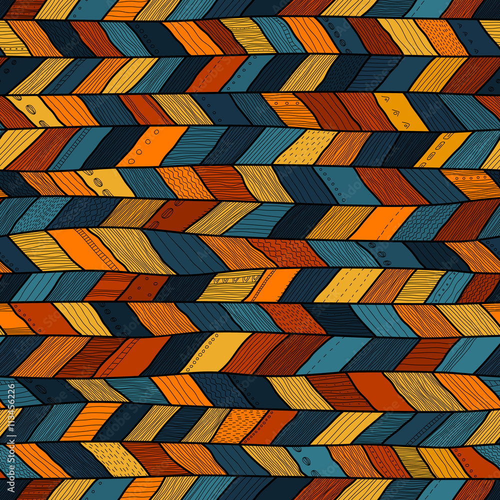 Obraz na plátně Tribal style crazy quilt, ethnic chevron multicolor.
