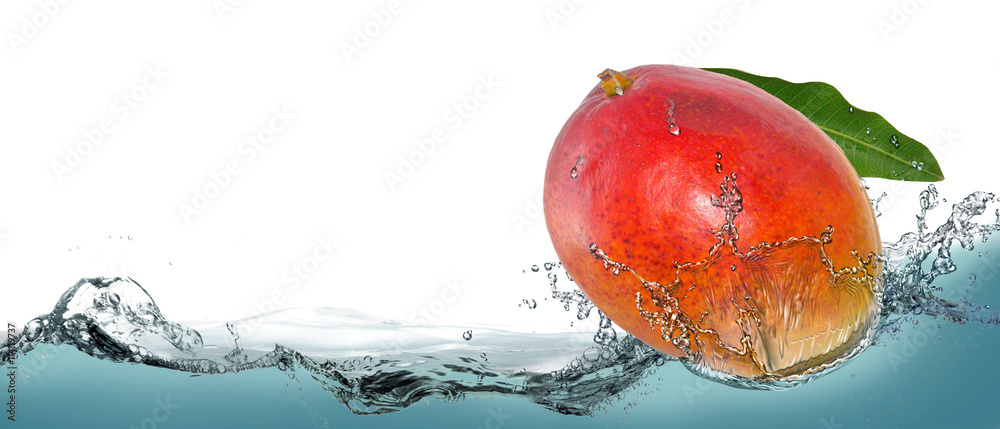 Obraz na plátně Tropical fruit mango in a spray of water.