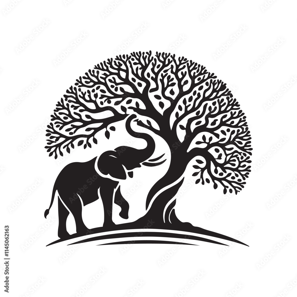 Obraz na plátně elephant and tree silhouette vector line art logo illustration